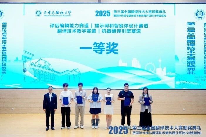 9月19-20日,第三届全国翻译技术大赛颁奖典礼暨国际传播与翻译技术素养提升百校行特别活动在天津成功举办。本次活动由中国外文局、全国翻译专业学位研究生教育指导委员会指导,中国翻译协会、中国外文局翻译院、天津外国语大学联合主办。中国外文局总编辑、中国翻译协会常务副会长兼秘书长高岸明、天津外国语大学党委书记周红蕾等嘉宾出席并致辞,为获奖代表颁奖。